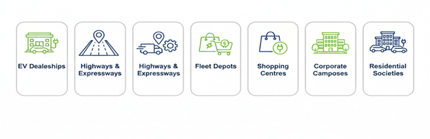 GEMSL delivers full-lifecycle EV infrastructure—site surveys, electrical load assessment, civil and electrical works, charger supply, installation, and commissioning backed by 24×7 technical support, preventive and corrective maintenance, AMCs, and centralized uptime monitoring.